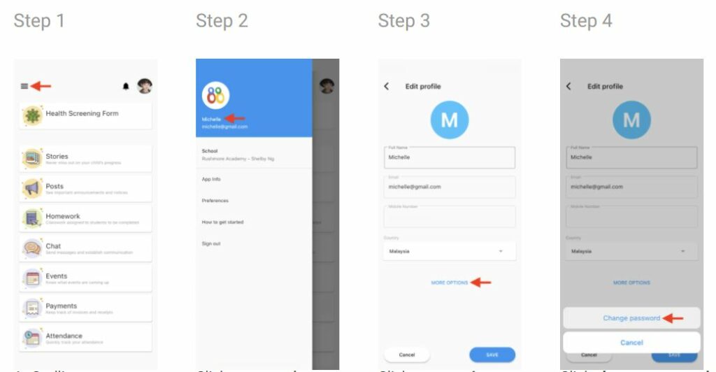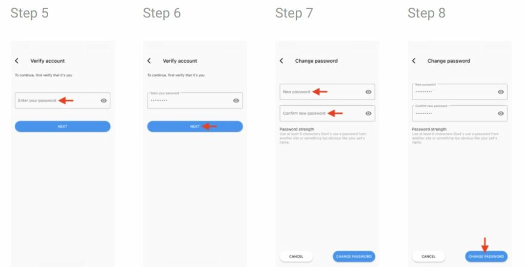 - Click change password