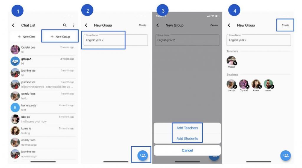 Chat in Oodlins allows school to instantly reach parents for any emergency. Parents are also able to use chat to contact the school on any enquiries. To start a chat with parents, school will need to add parent contact and details in student profile to proceed with the following steps: