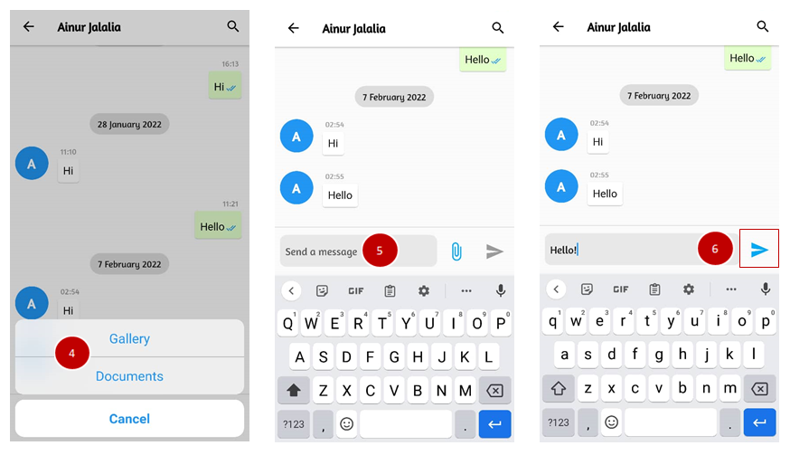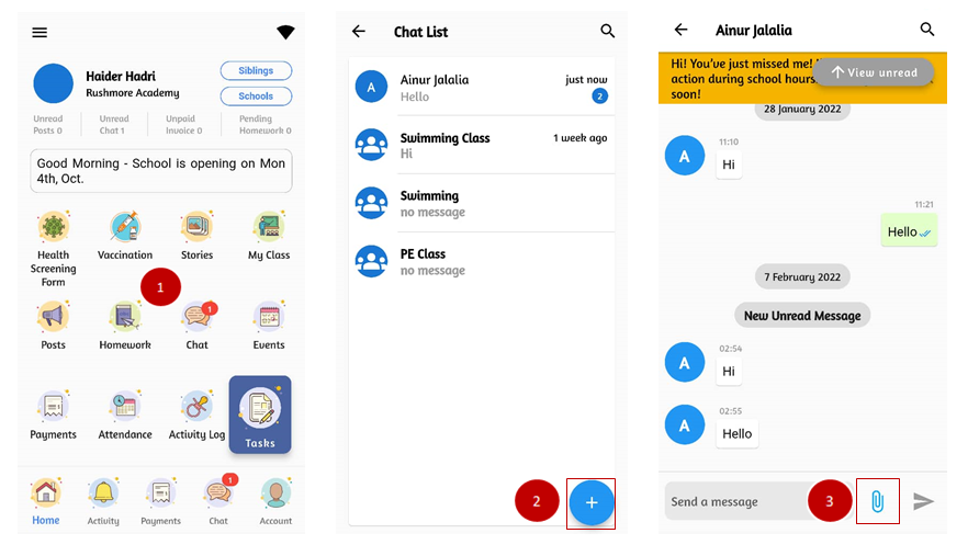 - Open the chat box with unread messages. Click on the attachment icon if you wish to send attachment.
