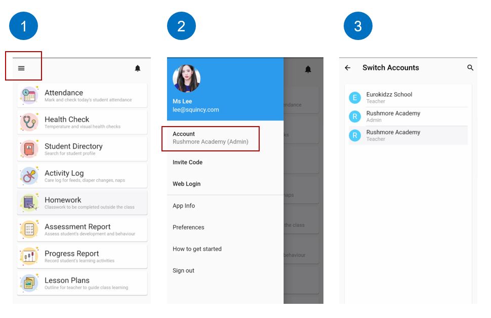 - You will see the school that you have been granted permission to access. Select to switch school.