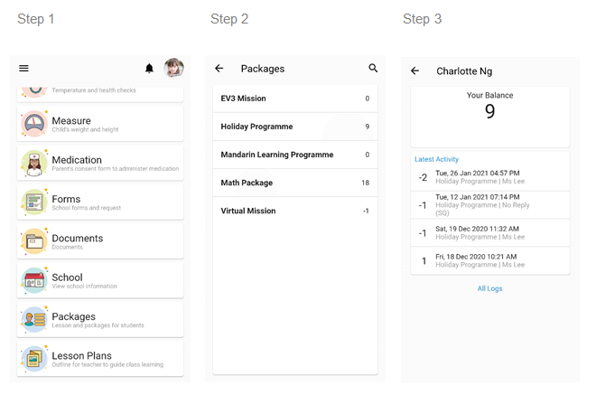 Parents can look forward to enrolling their child to additional lesson programme to maximise their children’s potential. Parents can view the availability of the programmes through the app.