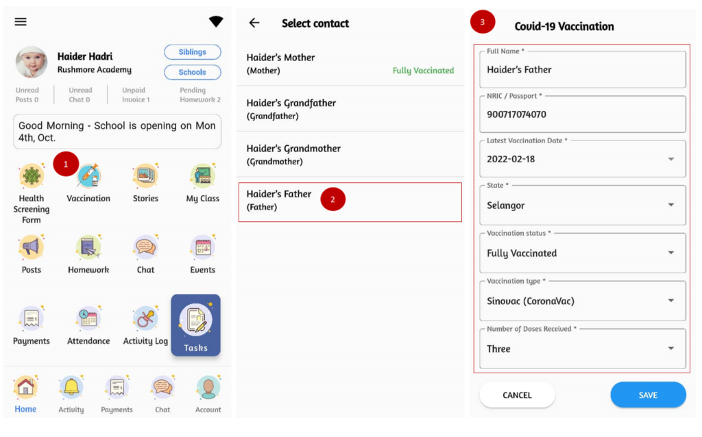 It’s important for the school to get update on parents’ vaccination status to ensure the health and safety of all children in the school especially when school is announced can be operated as usual by the Government.