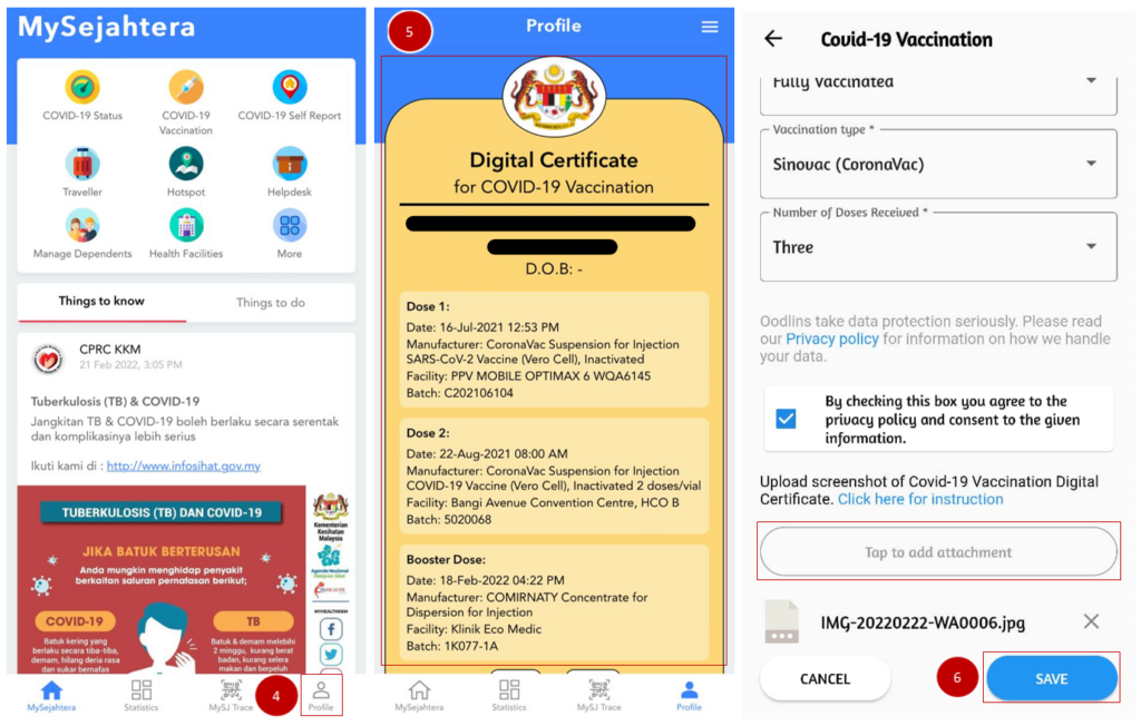 - Back to the vaccination form, scroll to the bottom and tap to add attachment to upload the screenshot of your digital certificate.